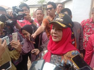 Bandar Lampung – Walikota Bandar Lampung Eva Dwiana meninjau 6 rumah penerima bedah rumah Bantuan Stimulan Perumahan Swadaya (BSPS) tahun 2023 yang telah rampung dibangun berada di Kampung Baru Sukaraja Jl. Ikan Sembilang, Sukaraja Kec. Bumi Waras, Kamis (11/01/2024).